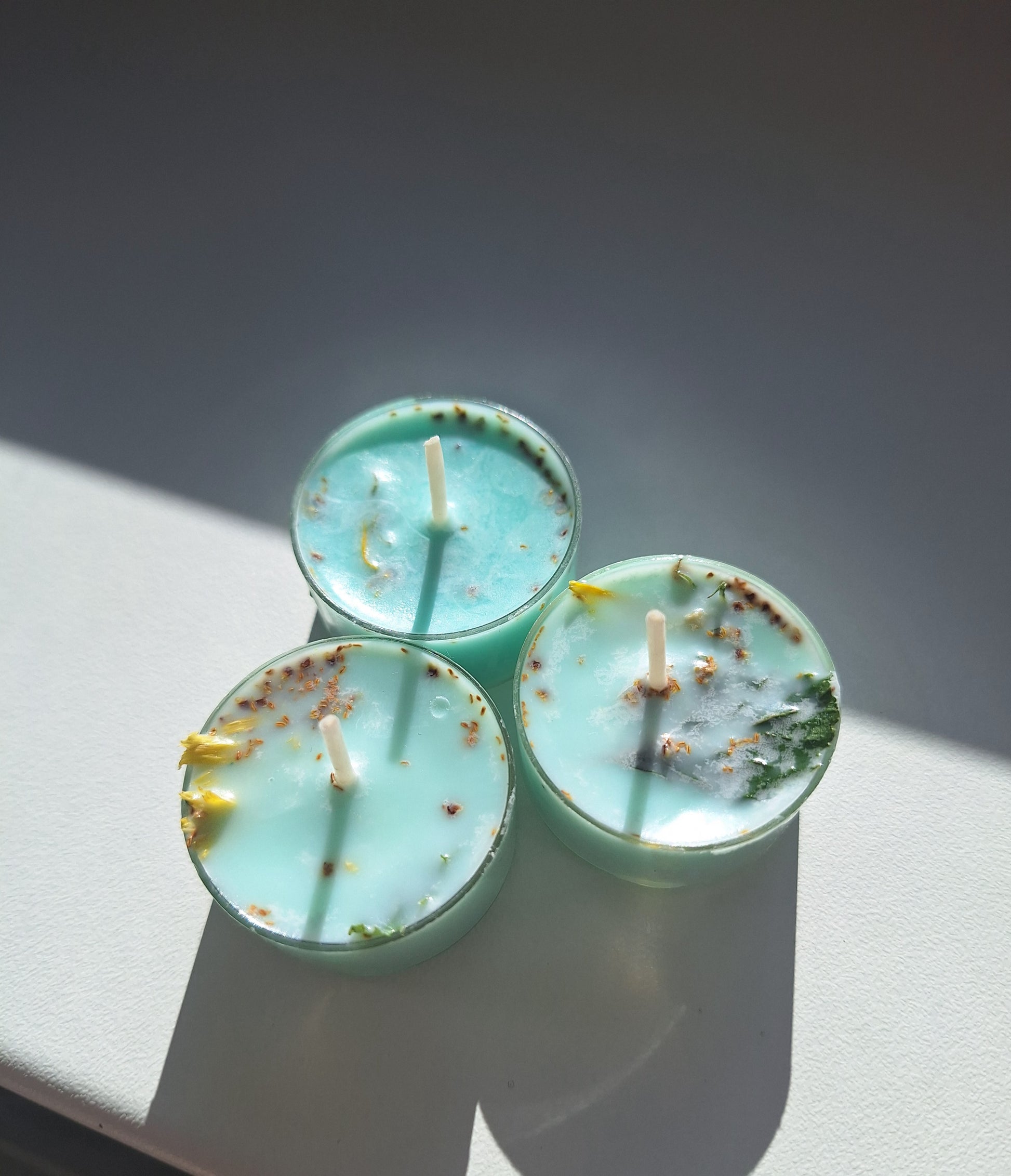 Žvakutės pagamintos iš natūralaus sojų ir kokoso vaško, žolelių ir eterinių aliejų.